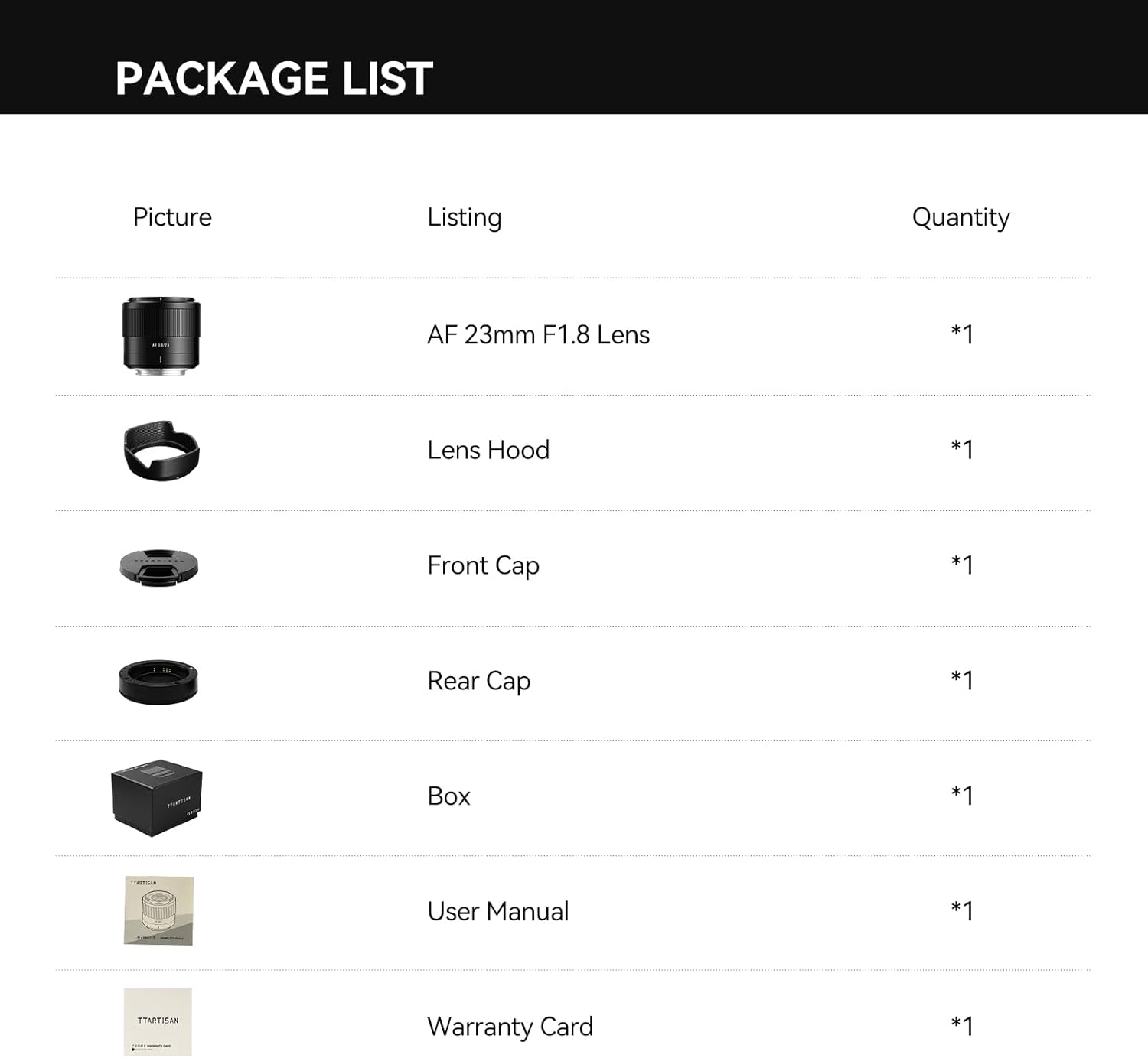 Capture stunning portraits, landscapes, street photography, and more with the TTArtisan AF 23mm lens. The fast f/1.8 aperture allows for beautiful bokeh and excellent low-light performance, ensuring that your photos stand out in any setting.
